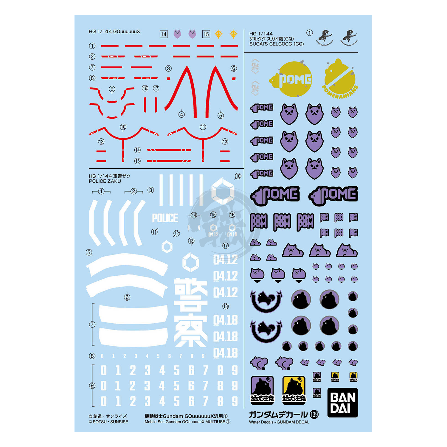 - Includes numerous markings that enhance the mechanical detail when applied to the plastic model of “Mobile Suit Gundam GQuuuuuuX (G-Quax)”.