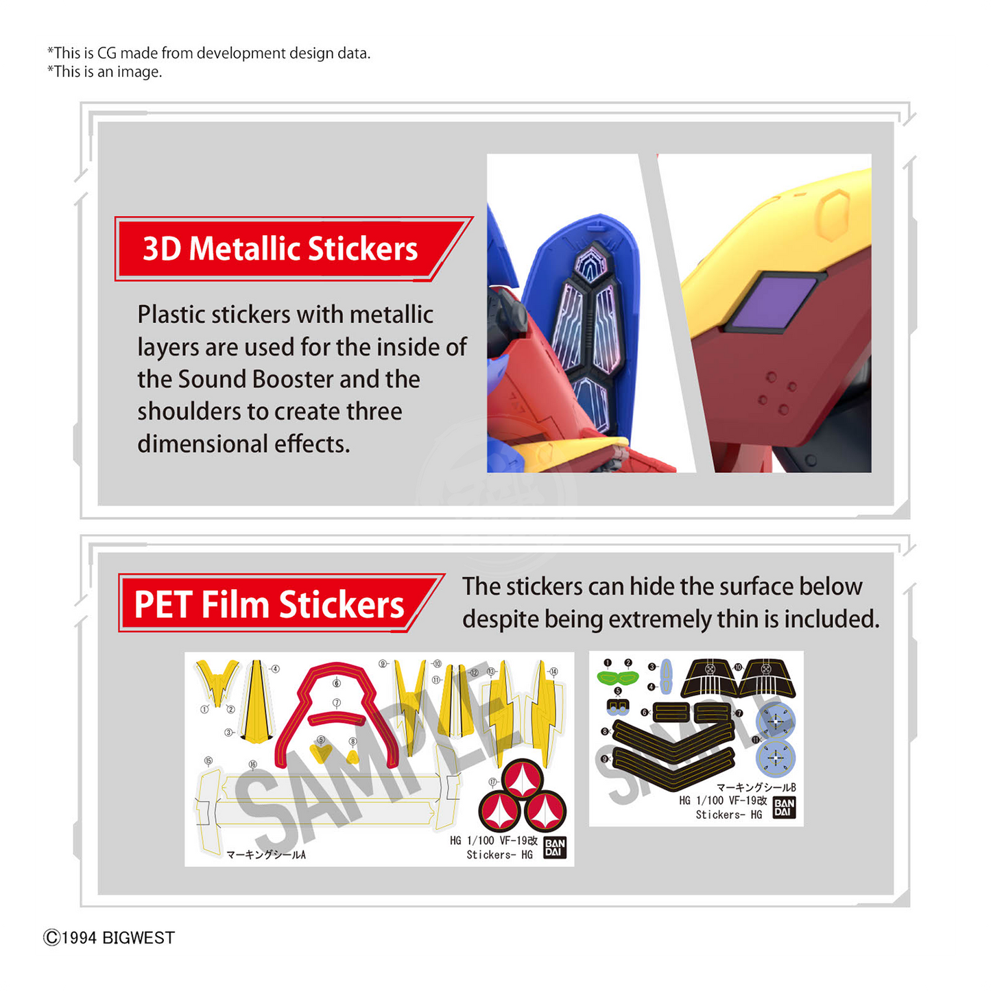 3D Metallic Seals: - Metallic-layered plastic seals are used inside the Sound Booster and on the shoulders to create a three-dimensional effect.