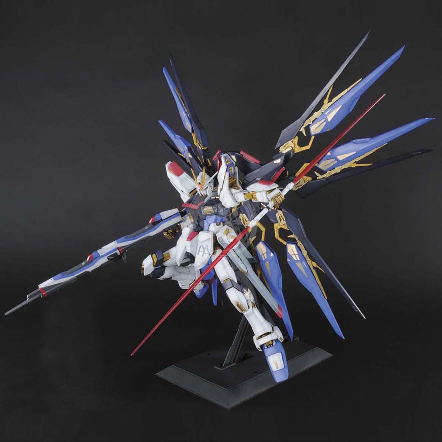 - Dedicated base for displaying Strike Freedom Gundam is included By using a dedicated base with adjustable angle , it is possible to display in dynamic action poses.